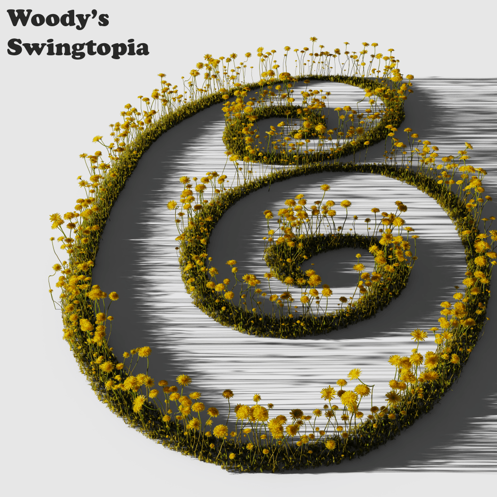 “Woody’s Swingtopia” is B’s first foray into the wild and strange, new world of complete musical freedom of expression. I’d like to think the songs created here are truly the culmination of a life-time of musical exploration and discovery. From my earliest radio and record listening as a child, through my nine years as a public school band student, through my first gigs as arranger and piano player for a contemporary gospel quartet. From my discovery of the blues and journey through the backroads of the early 20th century Delta, through the electrifying rock guitar of the ’60s and ’70s. Through my impressionable exposure to Jazz, Funk, New Age, and Meditation music. It’s all layered within and throughout this rambunctious hay-ride.