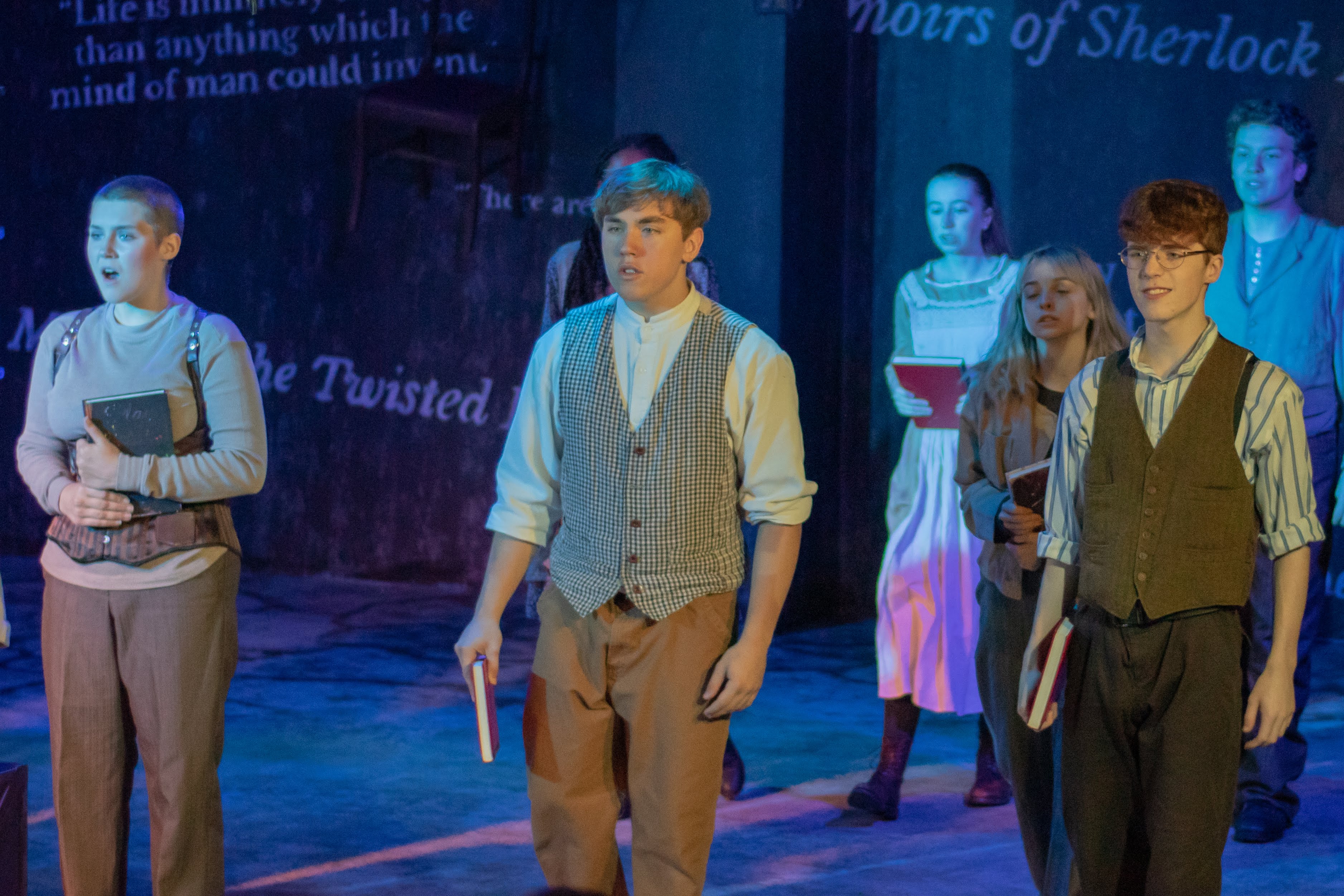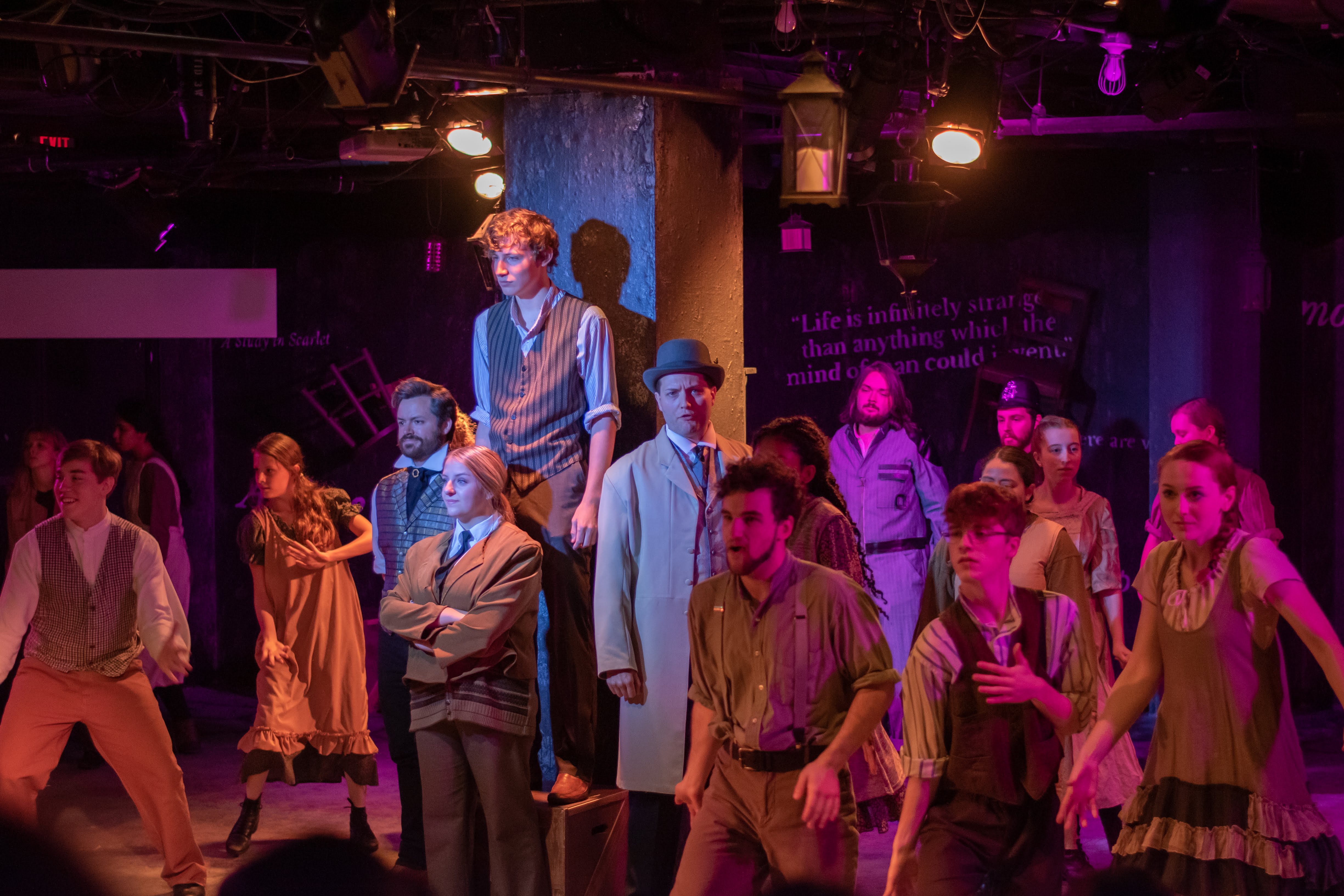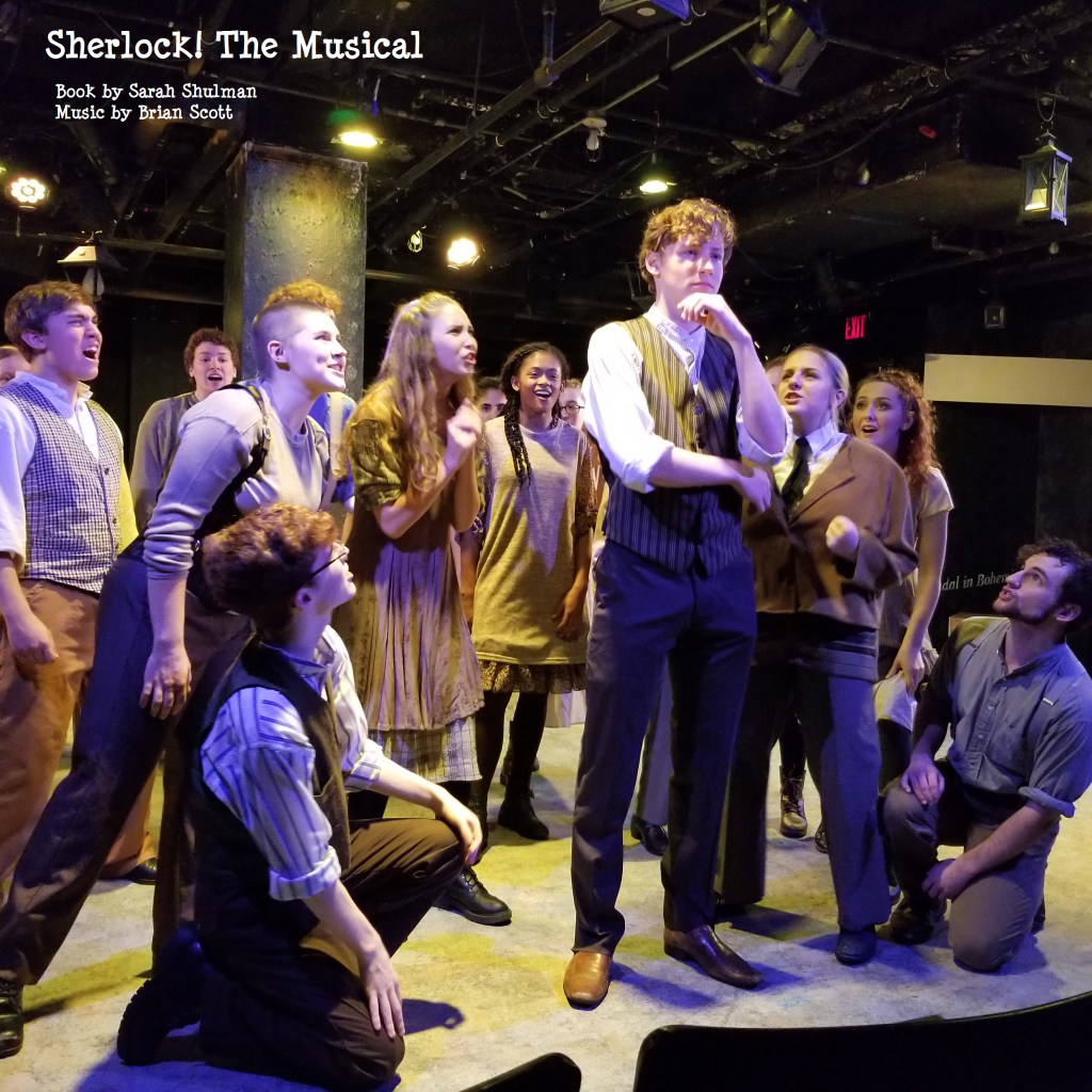 Sherlock! The Musical is an adaptation of the famous Arthur Conan Doyle character. Unlike his series of novels, this story takes place during Sherlock’s teen years long before he realizes his unique talents of observation could be applied to solving crimes. Many of Doyle’s characters in Sherlock’s adult life are part of the story including Jane Watson (a nice twist), his sister Minnie (Mycroft), Sebastian Moran, Professor Moriarty, Inspector LeStrade, Irene Adler, and the Baker Street Irregulars.